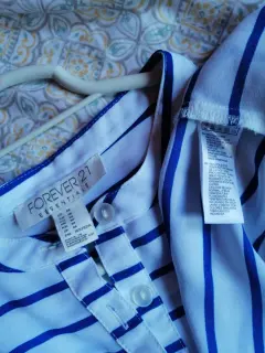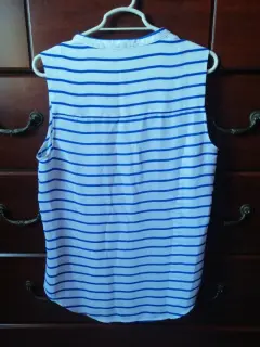 Blusa cuello v, con rallas. Blusa sin manga, talla M. super fresca. Sin detalles. Puesta una vez, casi nueva.