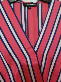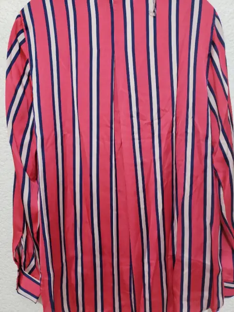 Blusa cuello V, tipo satin, corte al frente cruzado, resorte en la parte baja de frente, manga larga, ligeramente mas larga de atras, talla EG, 65cm de largo del frente, 72cm de largo de atras, axila a axila 54cm