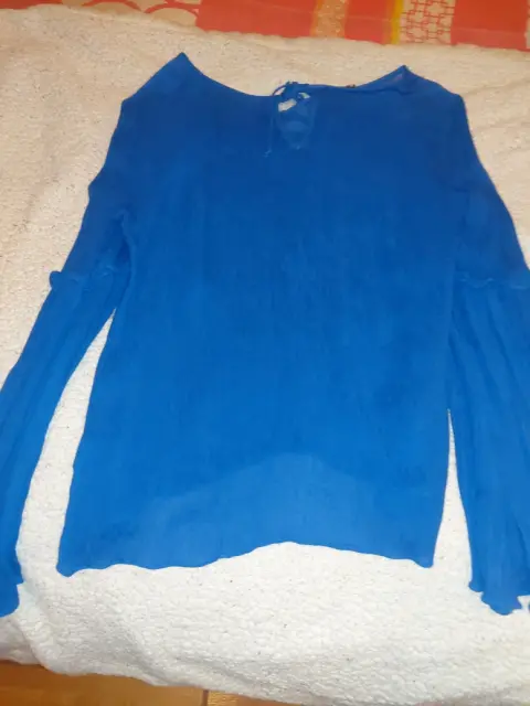 Blusa d gasa. Blusa azul rey, manga.larga tipo campana, ligera, se amolda al cuerpo, comoda pero elegante