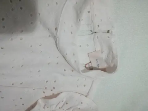 Blusa Blanca con una ligera tonalidad en rosa, talla extrachico, bordada