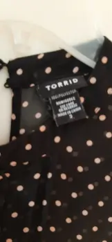 Blusa dama negra con puntos rosa viejo, desmangada. Semitransparente y holgada, perfecta para combinar con blazers. Talla 40, poliester. Detalles de surcido.