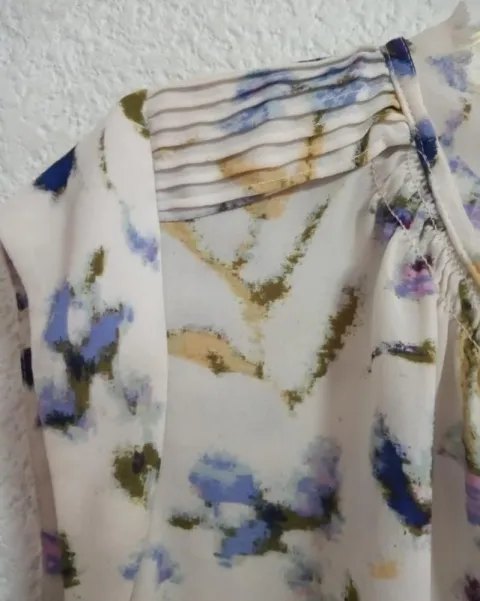 Hermosa blusa en color Beige, lindas mangas y cuello, en talla- S-MSemi transparente. Nueva.