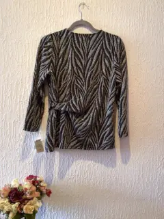 Blusa con estampado de zebra, Marca KASPER, Talla PETITE L, nueva con etiqueta.