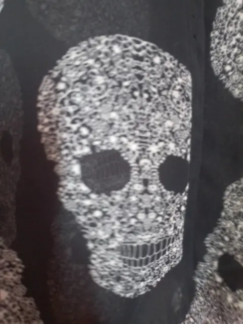 Blusa de calaveras. Blusa de botones con estampado de calaveras, tela transparente color negro, manga larga, hombros descubiertos.