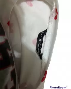 Blusa blanca con estampado de corazones y surcido en la parte de enfrente marca Shein corta, se usó muy poco