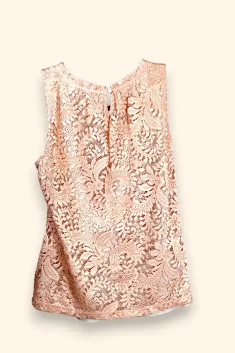 Blusita sin mangas en crochet rosa con fondo, está súper linda y muy combinable y casual, la use una sola vez y ajusta super mega bien.👉Obtén 10% de descuento con mi código: Pinky
