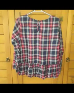Blusa cerrada de cuadros azul, rojo, talla M, manga larga, boton en espalda alta, bordado en pecho, en perfecto estado, sin detalles y limpia.
