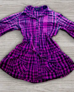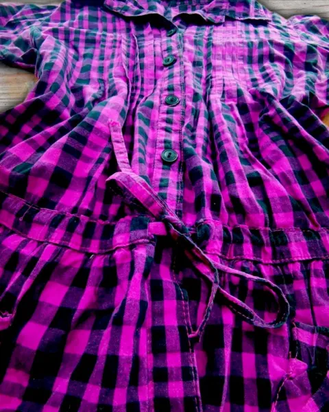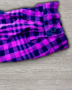 Talla : Grande (Queda hasta un 2x) Sin Detalles Tiene bolsitas en ambos lados Tiene todos sus botones Puedes amarrar ala cintura y parece blusa peplum Es color Fiusha con los cuadros morados En la parte de las mangas las puedes doblar y amarrar (hay un botón) ENVÍO SOLO VIERNES!