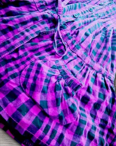 Blusa de cuadros Fiusha. Talla : Grande (Queda hasta un 2x) Sin Detalles Tiene bolsitas en ambos lados Tiene todos sus botones Puedes amarrar ala cintura y parece blusa peplum Es color Fiusha con los cuadros morados En la parte de las mangas las puedes doblar y amarrar (hay un botón) ENVÍO SOLO VIERNES!