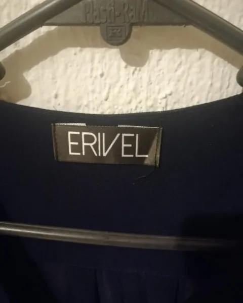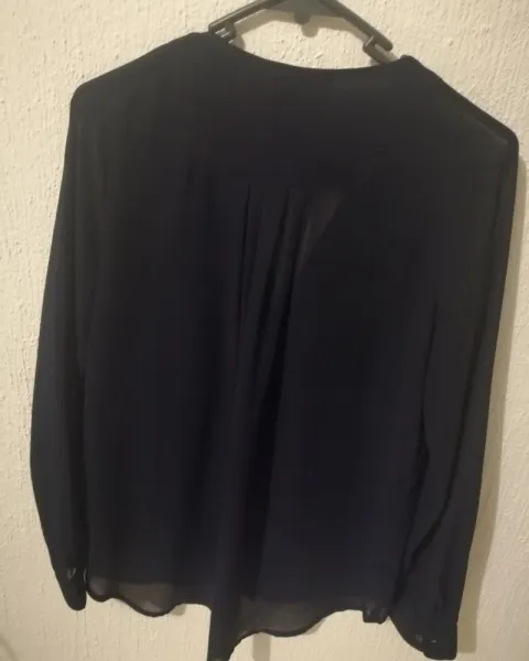 Blusa semi transparente manga larga, color azul marino, botones al frente talla m/l