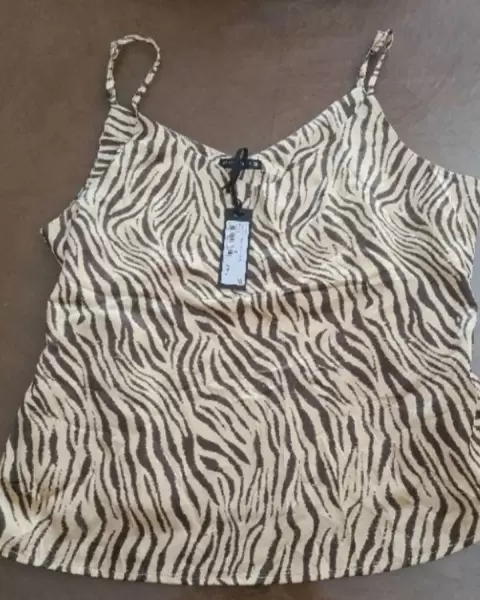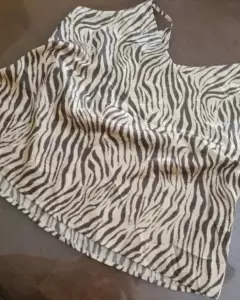 Blusa satinada color beige con negro con diseño de zebra, ideal para dormir o uso diario en verano.