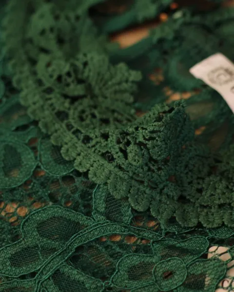 Blusa de encaje. Hermosa blusa de encaje súper suave. Manga larga, ligeramente acampanada. Cuello con detalle de crochet. Blusa hasta el ombligo
