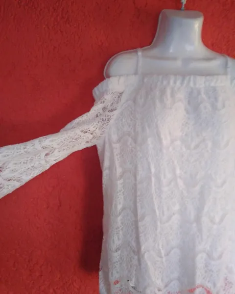 Hermosa blusa de encaje tipo campesina blanca hermosa para vestir formal, casual, para calor o frio esta hermosa y queda con todo ❤️Medidas aproximadas largo del brazo 60, largo del hombro hacia abajo 61, brazo 32, hombro a hombro 52, contura 108, pecho 110❤️