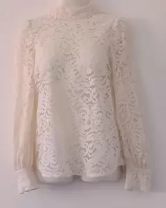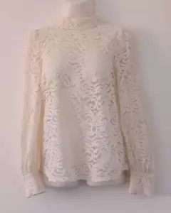 Preciosa blusa de cuello alto en encaje color hueso, preciosa y superelegante maravillosa para cualquier ocasión un estilo muy vintage