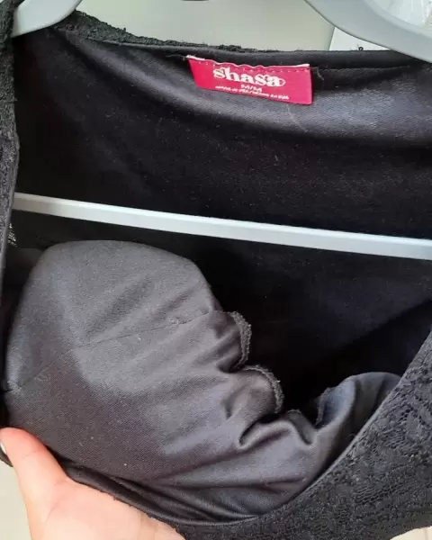 De encaje con forro y protector para usarla sin brasier, con forma en A sirve mucho para las que no tenemos cintura marcada.