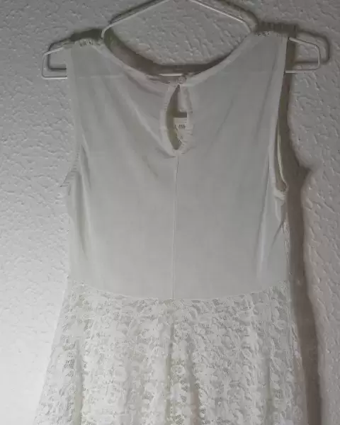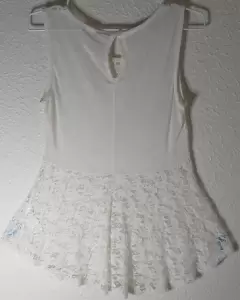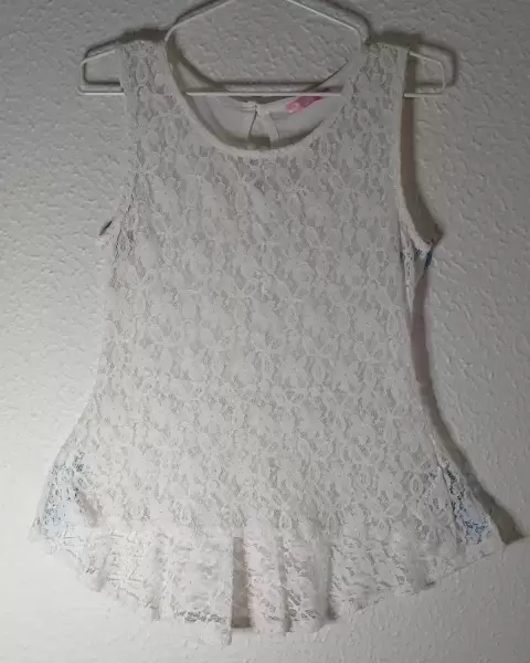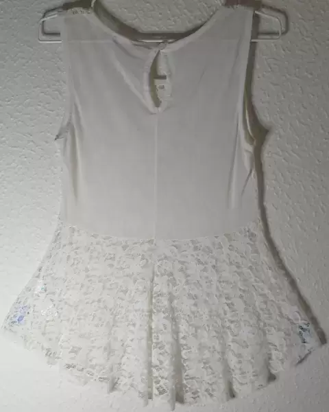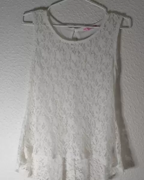 Blusa de encaje y transparente. Blusa blanca con encaje por la parte frontal y transparente por la parte de atrás Sin mangasCon cola de patoIdeal con pantalón de vestirListo para toda ocasión