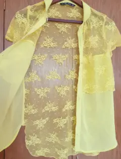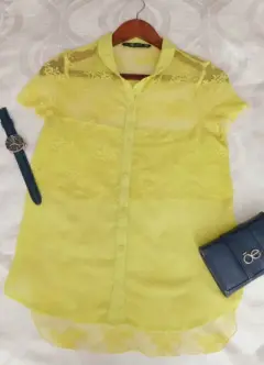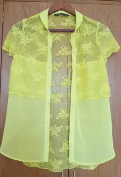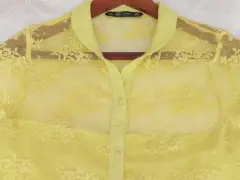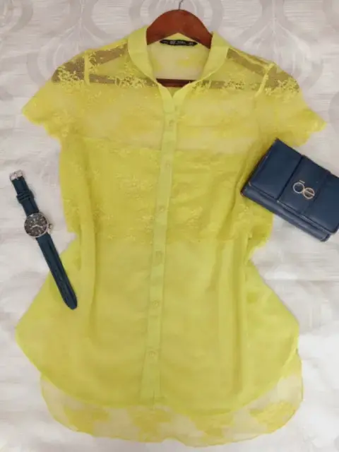 Blusa de encaje Zara. Fresca, elegante y bonita blusa de encaje y chiffon de un color verde limón que convina con infinidad de colores, ideal para disfrutarla en días de verano. es tuya