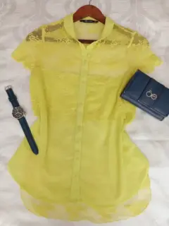 Fresca, elegante y bonita blusa de encaje y chiffon de un color verde limón que convina con infinidad de colores, ideal para disfrutarla en días de verano. es tuya