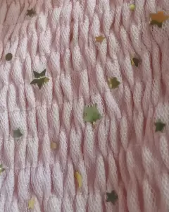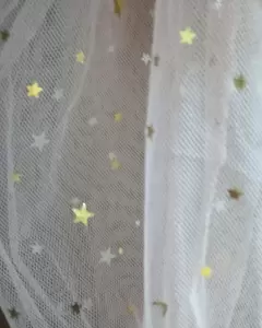 Blusa tipo campesina, es corta sin llegar a ser ombliguera, tiene detalles de estrellas doradas y las mangas son transparentes, es fiel a su talla.