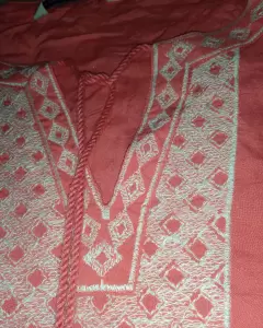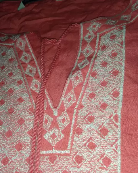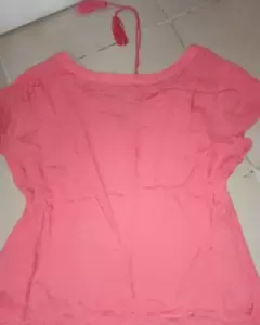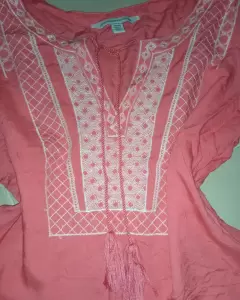 Bonita blusa ligera con bordado muy lindo color coral y beige manga corta pequeña abertura en pecho