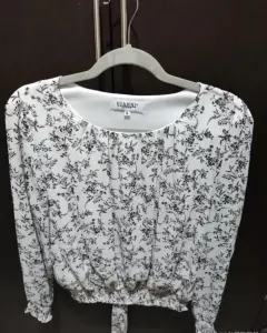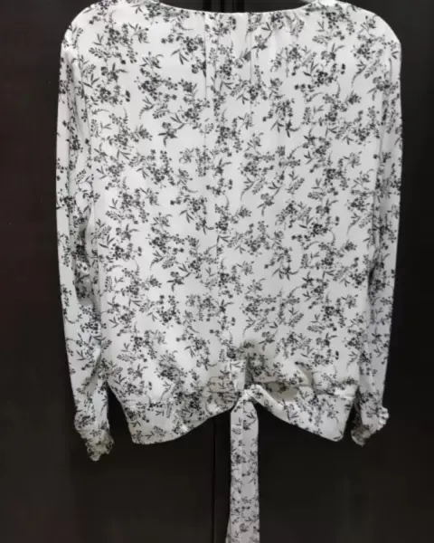 Blusa de gasa. Bonita blusa talla grande, blanca con negro de gasa, con elástico en manga larga, transparente y elástico en cadera, nueva.