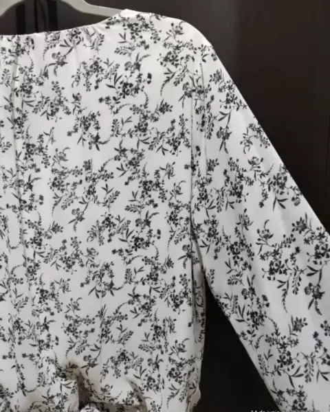 Bonita blusa talla grande, blanca con negro de gasa, con elástico en manga larga, transparente y elástico en cadera, nueva.
