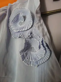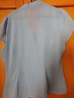 Blusa de color celeste, tela fresca de gasa, es americana, para mujeres de talla chica o mediana