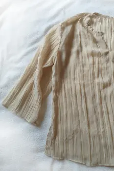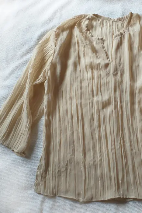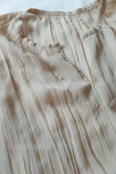 blusa de gasa color beige con hilos plata