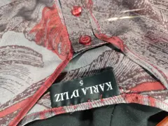 Blusa de gasa / contrastes rojo&gris. Blusa de gasa, print de hojas (naturaleza muerta) en tonos rojo quemado y gris. Transparenta, tela rígida, ligera, fresca y delicada. Muy bonita 😍 Talla 5