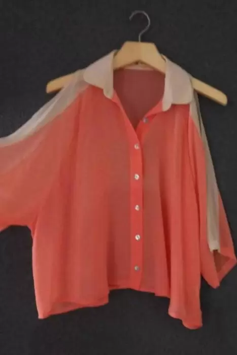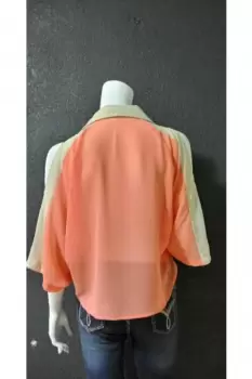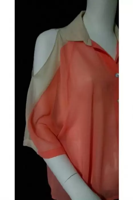 Blusa de Gasa Cotton Candy. Blusa de gasa Naranja y beige con abertura en hombros,Marca Cotton CandyEn Perfecto Estado
