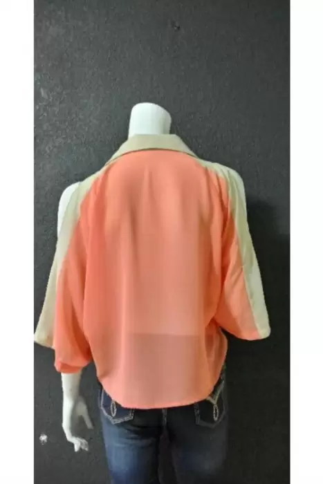 Blusa de gasa Naranja y beige con abertura en hombros,Marca Cotton CandyEn Perfecto Estado