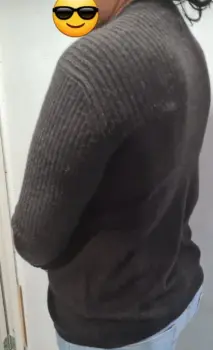 Es talla s pero puede dar una talla M qué sea delgada para que no deforme el bonito estilo, no tiene ningún detalle, el largo de la manga es de 49 cm, es muy calentita
