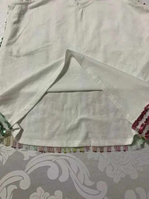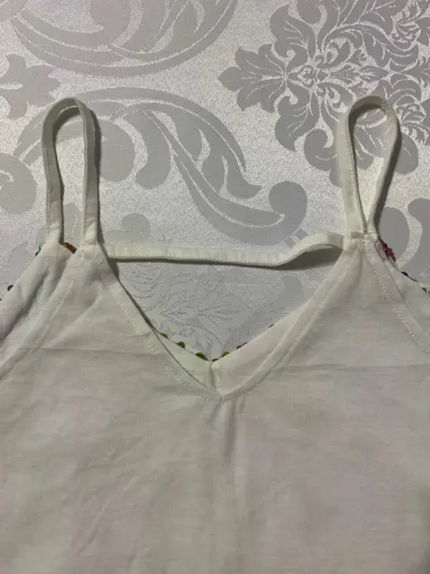 Blusa de tirantes, cuello en V, con lentejuelas formando los colores del arcoíris. Medidas/ busto: 44 cm, cintura: 43 cm, largo: 60 cm.