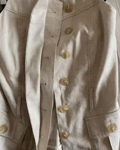 Blusa halter de lino, se abrocha con botones y tiene un cinturón de la misma tela, la parte de atrás es con espalda descubierta.