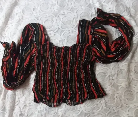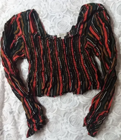 Blusa de manga larga, con escote cuadrado y de largo a la cintura, elástico en el torso
