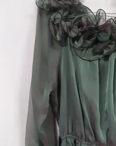 Hermosa blusa se vestir con olanes color tornasol manga larga . Talla L