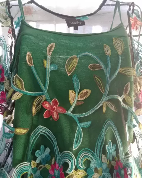 Preciosa blusita de mesh en color negro con encaje de flores muy coloridas😍😍😍 manga corta y corte hasta la cintura, incluye blusita verde para usar debajo o la puedes combinar con un bralett 😍😍❤️