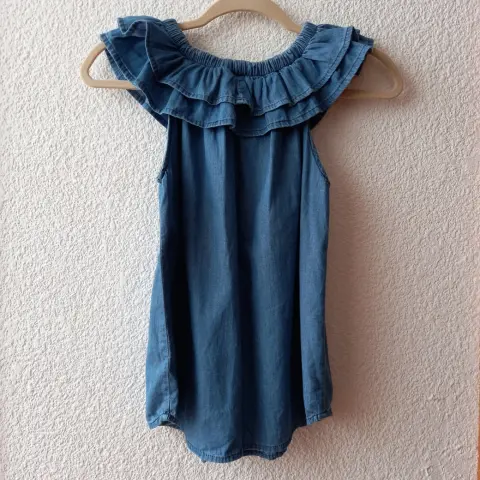 Blusa de Mezclilla talla 14 años. Puede llevarse a los hombros. Para más prendas hermosas visita mi closet. Mi código de descuento MoraB3XoL0