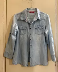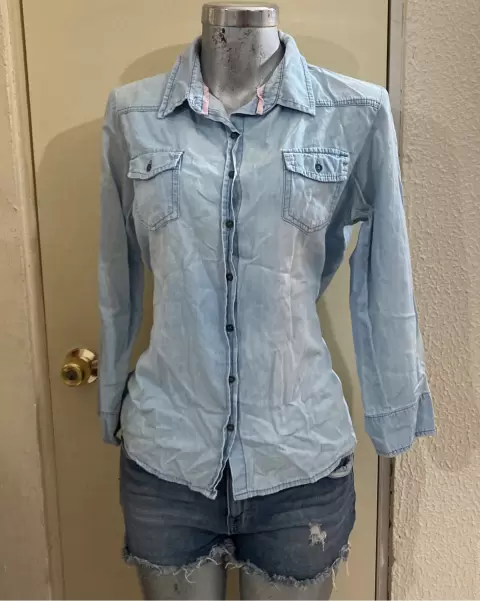 Blusa de mezclilla manga larga, talla chica, botones al frente