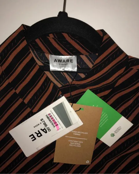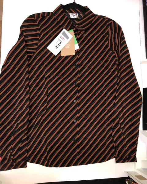 Blusa manga larga Aware by Vero Moda, en color negro y cafe con botones en frente, cuello y puños de camisa. Material poliéster.