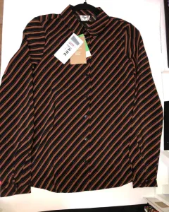 Blusa de mujer. Blusa manga larga Aware by Vero Moda, en color negro y cafe con botones en frente, cuello y puños de camisa. Material poliéster.