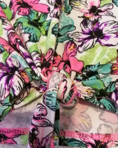 Es super ligera y fresca para estos calores tiene bonitos detalles de peluchito en las mangas y los colores son muy vivos, dice talla L pero queda a una talla S.