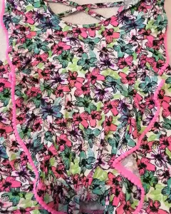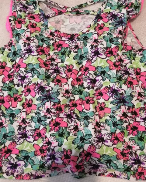 Blusa de olanes sin mangas. Es super ligera y fresca para estos calores tiene bonitos detalles de peluchito en las mangas y los colores son muy vivos, dice talla L pero queda a una talla S.
