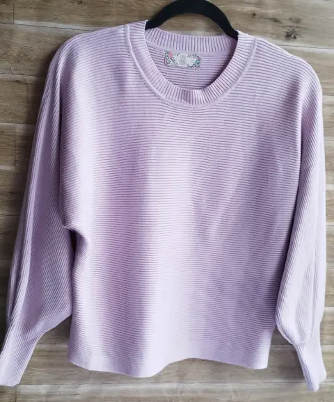 Blusa de punto, estira, color lila, mangas anchas en la axila y ceñidas en puño, Pink Rose Vintage, a la cinturaTalla LMedidas tomadas por un solo lado:*Cintura 45 cm*Largo 53 cm