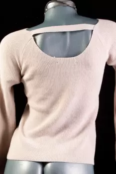 Hermosa blusa de punto con manga abanico. Con detalle en el escote de la parte de atrás. Su tono la hace perfecta para combinar con cualquier estilo y ser una pieza básica en el armario. Es talla XS, mide 43 cm de axila a axila y estira hasta los 47 cm, tiene 56 cm de largo.