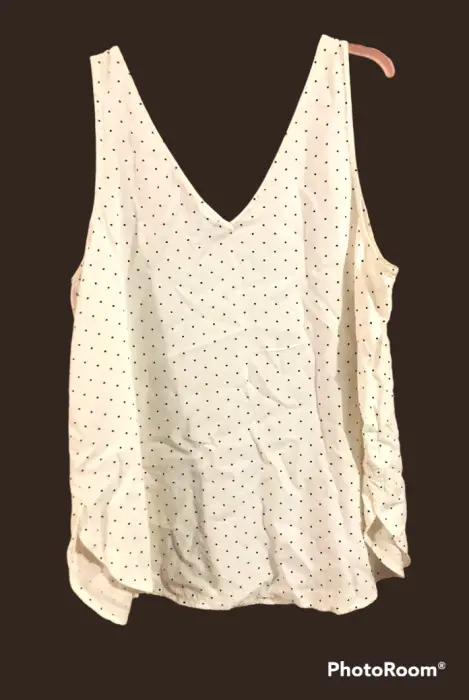 Blusa de puntos. Blusa de cuello V sin mangas, de puntitos negros la tela está súper fresca y viene bien para esta primavera