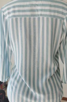 Blusa de rayas blanco con azul. Blusa de rayas blanco con azul claro, escote en V botones al frente, corte holgado