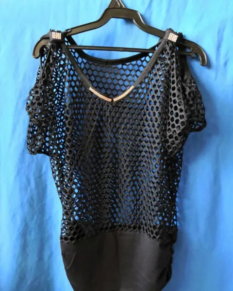 Blusa de red. Blusa de red, negra unitalla, con piedra en cuello solo se utilizó 1 vez y se encuentra en buen estado.