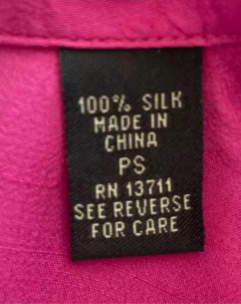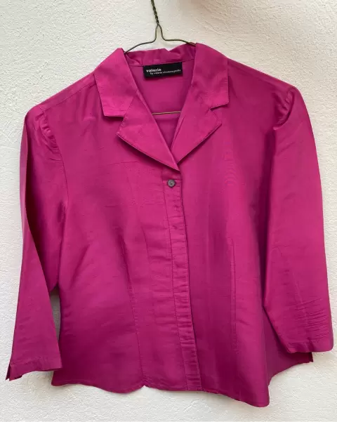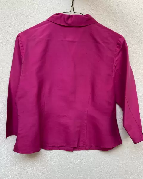 Blusa con manga 3/4, de seda. Limpieza en tintorería. Talla petite chica. Medidas: 50 cm de largo, 46 cm de axila a axila, 38 cm de hombros y manga de 38 cm de largo. Color rosa mexicano.