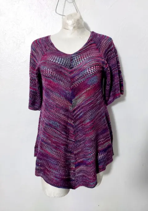 Blusa muy hermosa.De tejido finoCuello VTalla S y considero que queda a M (el maniquí es M)Tiene strechDe axila a axila: 47 cmLargo hasta el pico del centro y midiendo desde hombros: 78 cmSin detalles y en excelentes condiciones. Como Nueva.